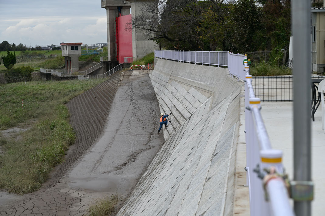 地点写真のコンクリートブロックや特にその目地を見ると、10月15日より少々泥が落ちているから、撮影したのは10月15日より後のように見える。