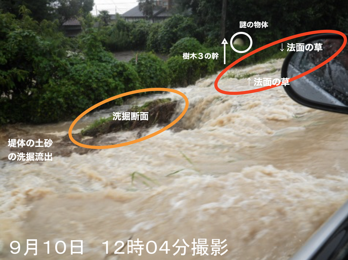 越水による川裏側法面の侵食ではないのだとすると、どう考えればよいのでしょうか。